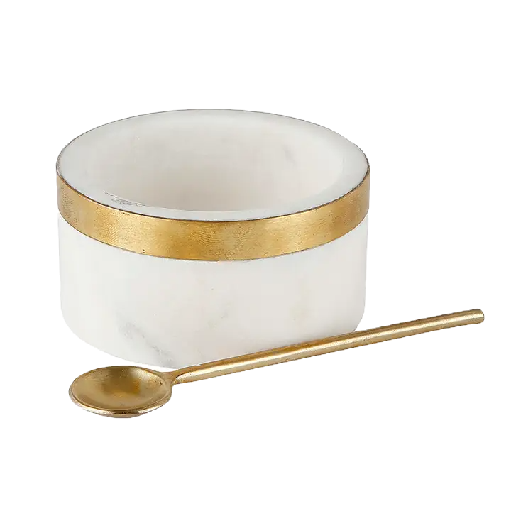 This stylish marble bowl coupled with the brass spoon is an ideal choice to blend your mixture of spices. It is functional and stylish enhancing the cooking experience.